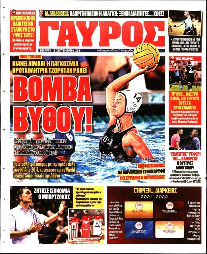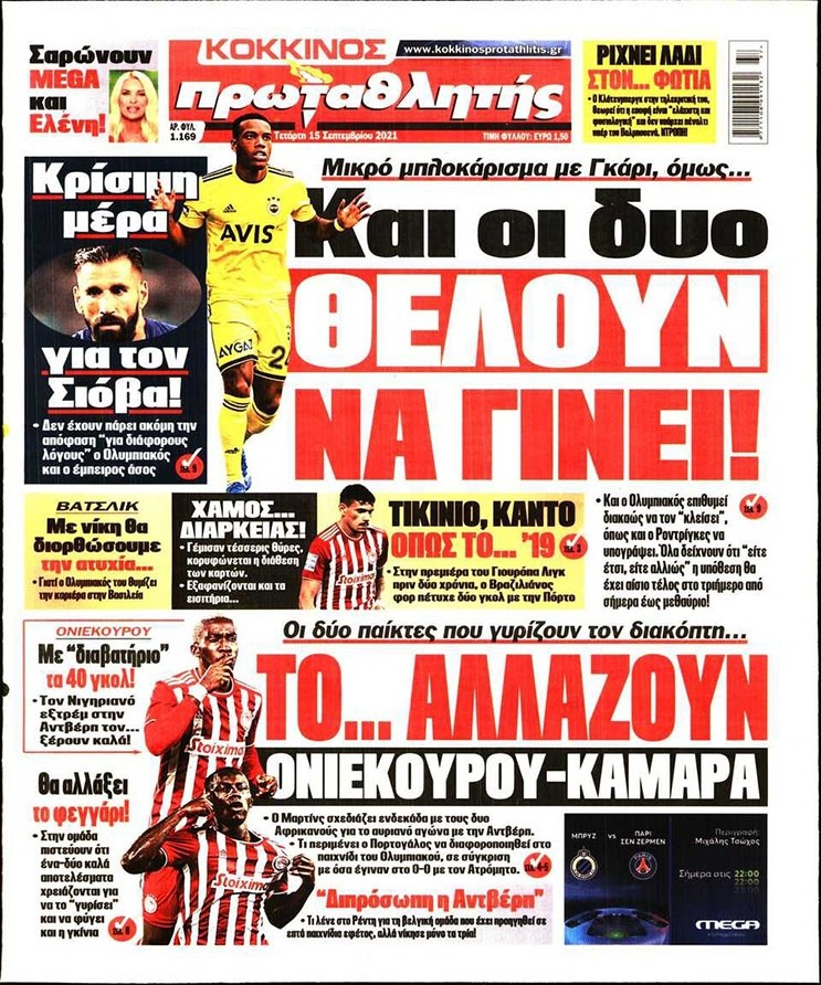 Το πρωτοσέλιδο του Κόκκινου Πρωταθλητή (15/9)