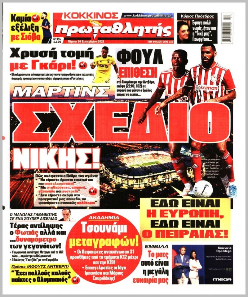 Το πρωτοσέλιδο του «Κόκκινου Πρωταθλητή», μπορείτε να δείτε μέσω του σάιτ μας. Καθημερινά εδώ, πώς κυκλοφορεί η εφημερίδα που καλύπτει όλη την «ερυθρόλευκη» δραστηριότητα.