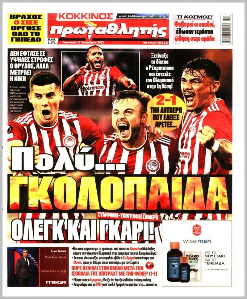 Το πρωτοσέλιδο του Κόκκινου Πρωταθλητή (17/9)