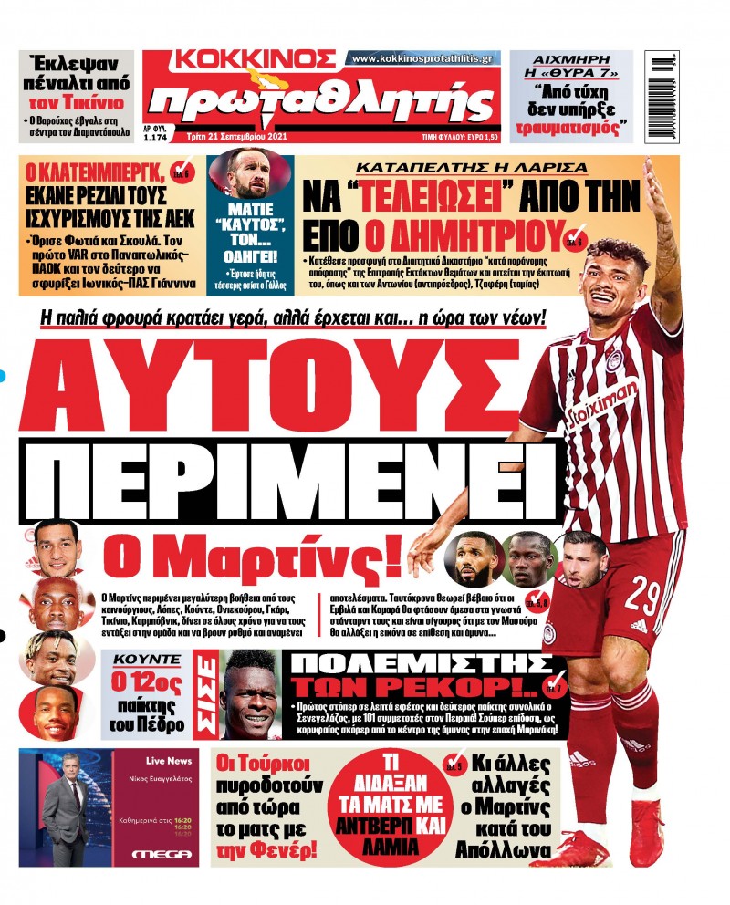 Το πρωτοσέλιδο του Κόκκινου Πρωταθλητή (21/9)