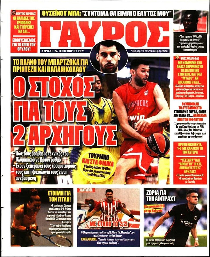 Το πρωτοσέλιδο του Κόκκινου Πρωταθλητή (26/9)
