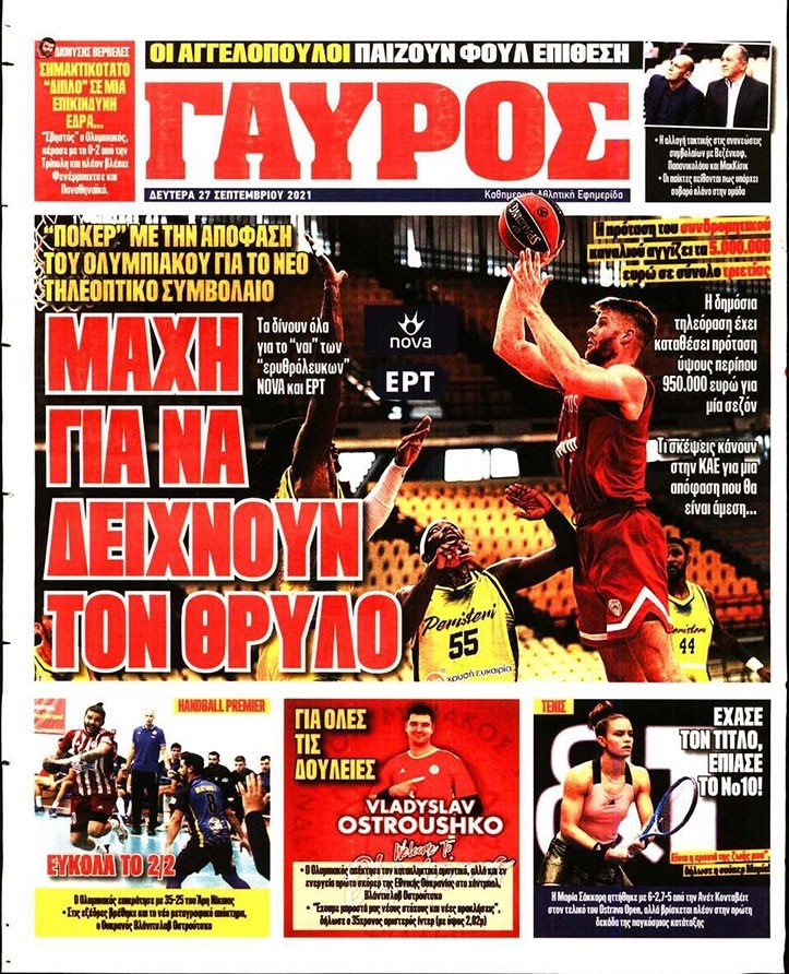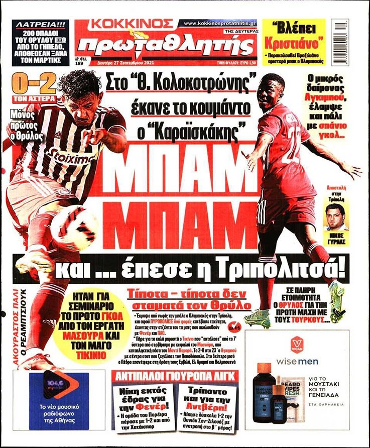 Το πρωτοσέλιδο του Κόκκινου Πρωταθλητή (27/9)
