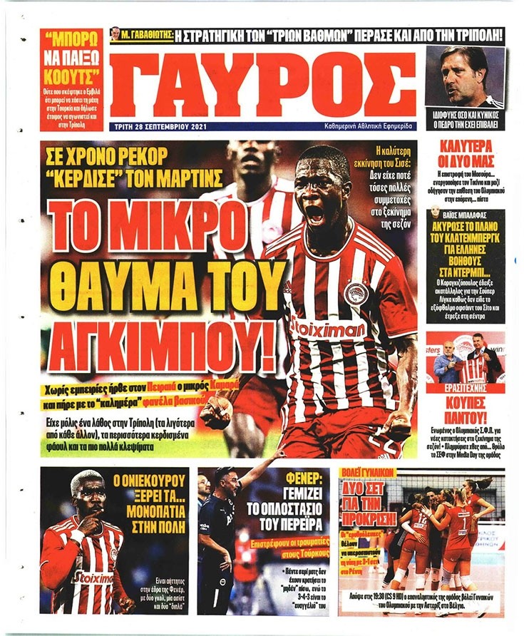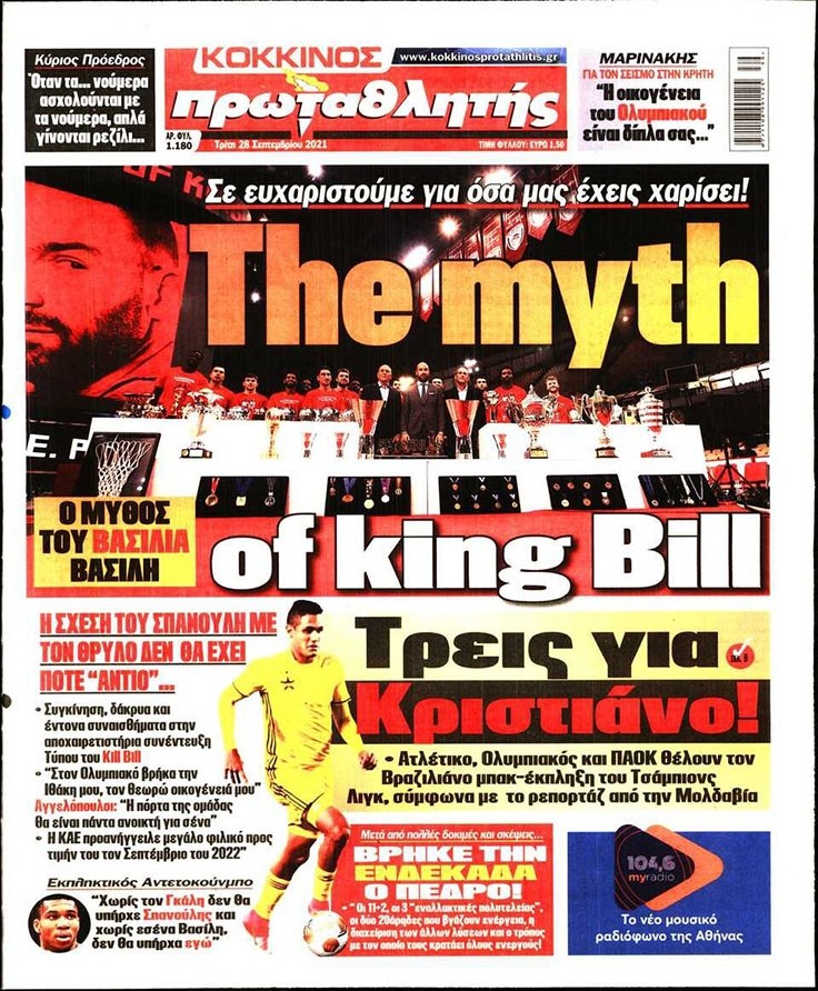 Το πρωτοσέλιδο του Κόκκινου Πρωταθλητή (28/9)