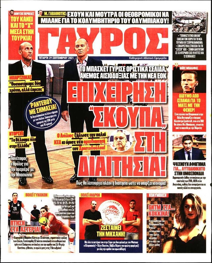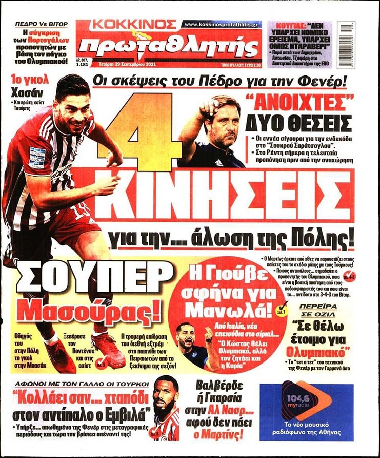 Το πρωτοσέλιδο του Κόκκινου Πρωταθλητή (29/9)