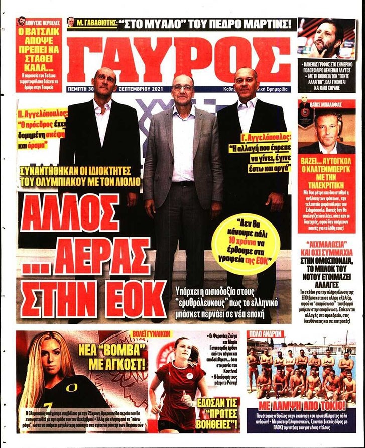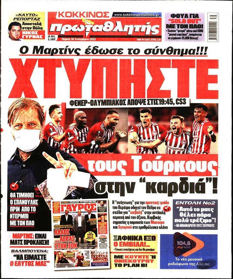 Το πρωτοσέλιδο του Κόκκινου Πρωταθλητή (30/9)