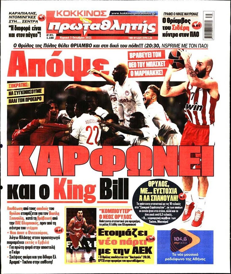 Το πρωτοσέλιδο του Κόκκινου Πρωταθλητή (3/10)