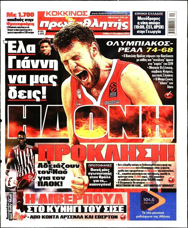 Το πρωτοσέλιδο του Κόκκινου Πρωταθλητή (9/10)