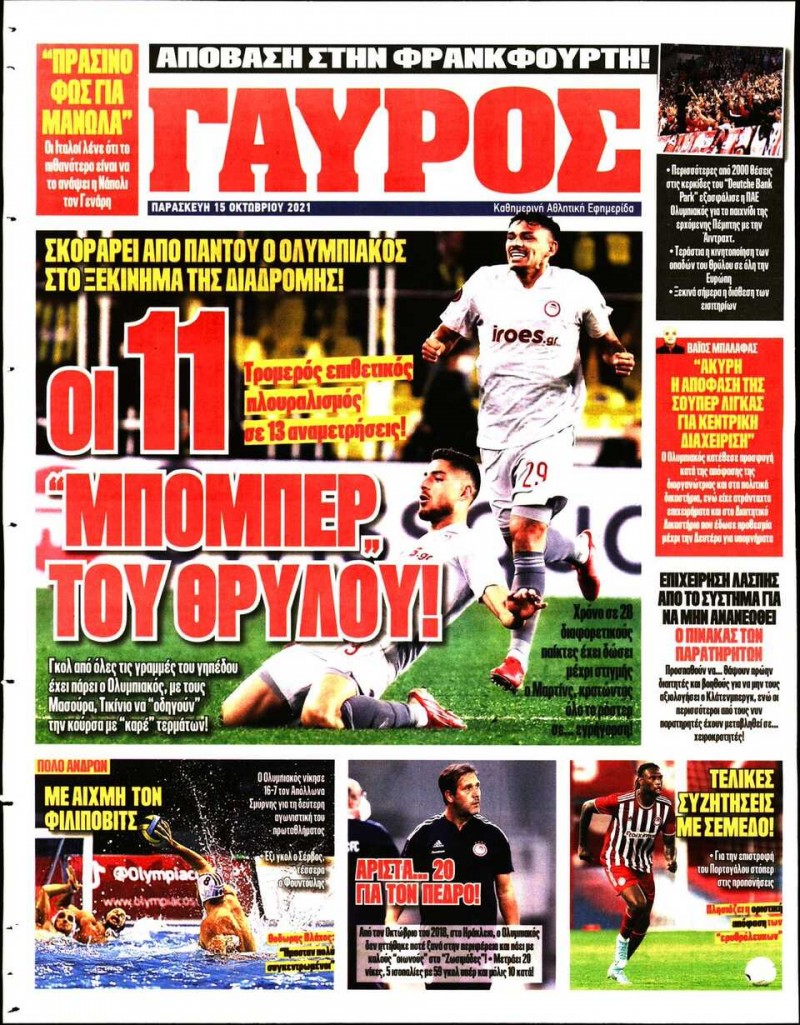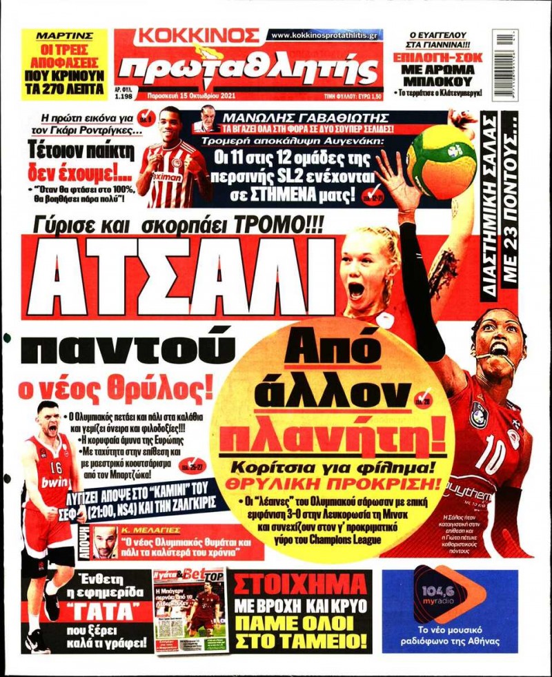 Το πρωτοσέλιδο του Κόκκινου Πρωταθλητή (15/10)