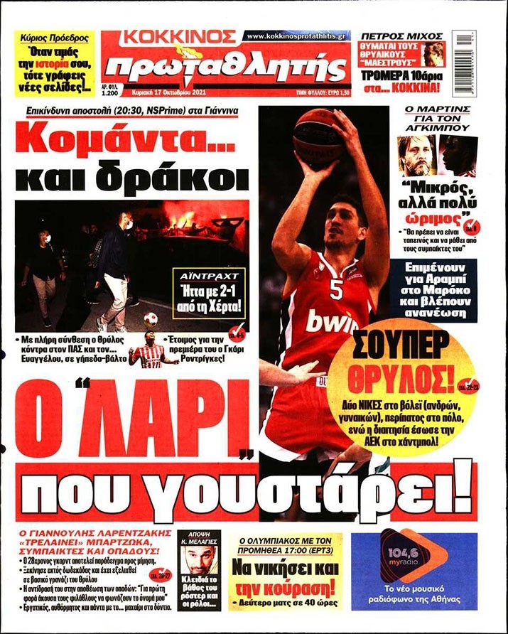Το πρωτοσέλιδο του Κόκκινου Πρωταθλητή (17/10)