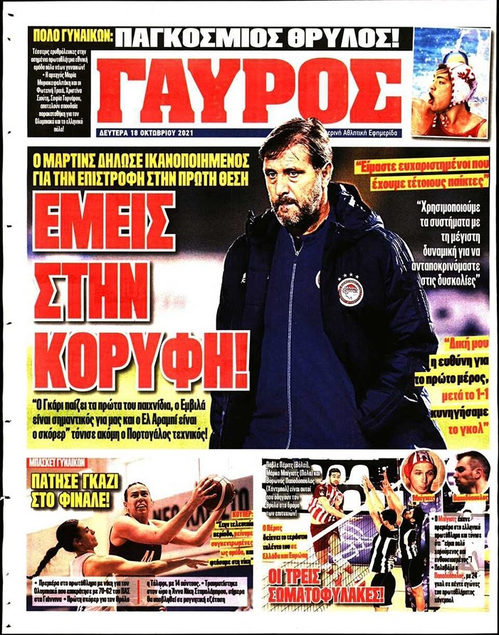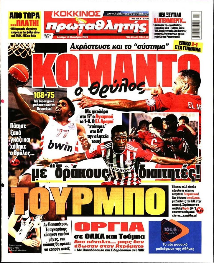 Το πρωτοσέλιδο του Κόκκινου Πρωταθλητή (18/10)
