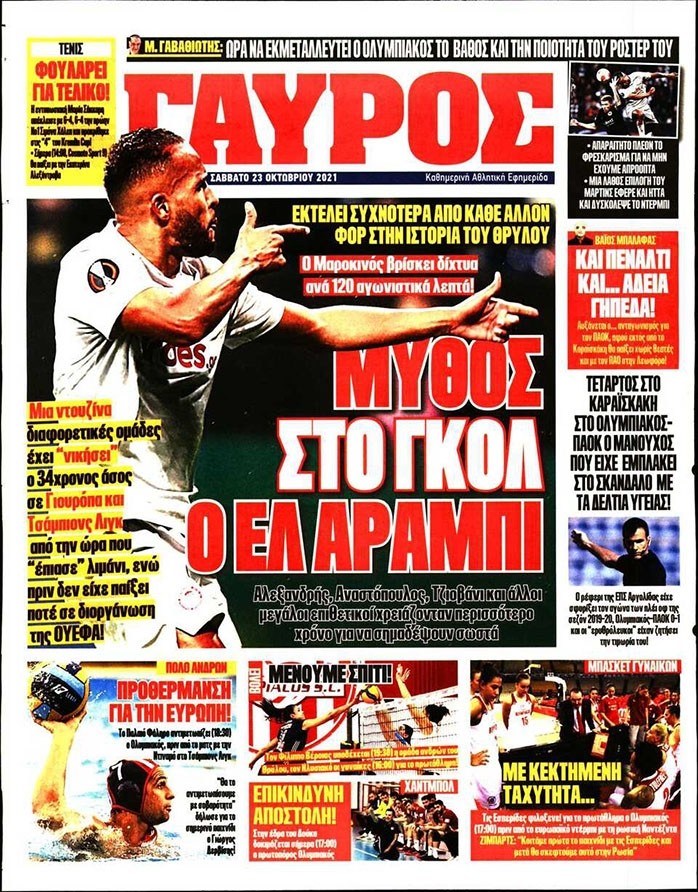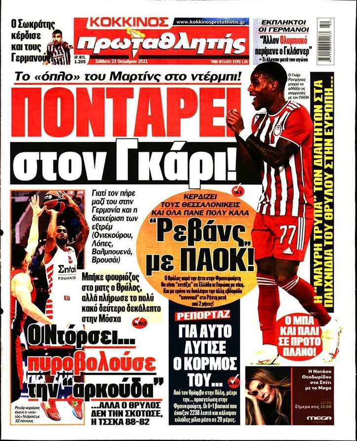 Το πρωτοσέλιδο του Κόκκινου Πρωταθλητή (23/10)