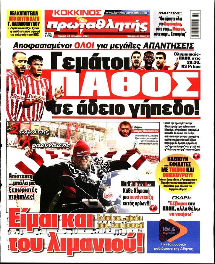 Το πρωτοσέλιδο του Κόκκινου Πρωταθλητή (24/10)