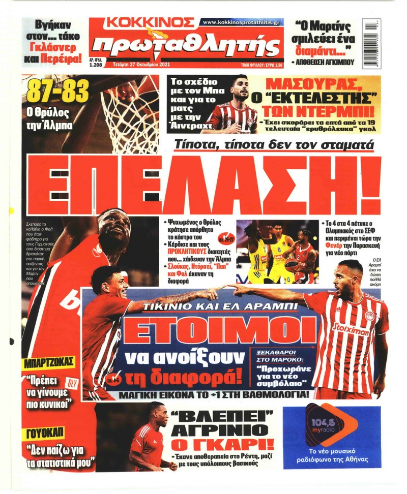 Το πρωτοσέλιδο του Κόκκινου Πρωταθλητή (27/10)