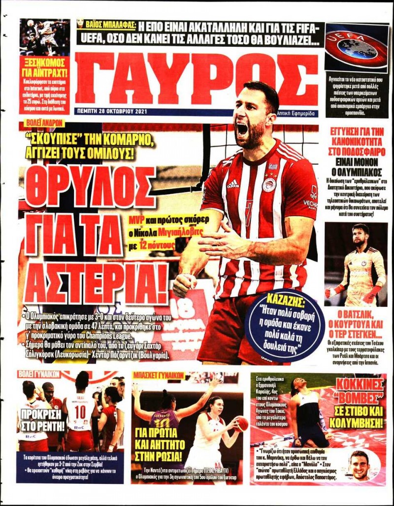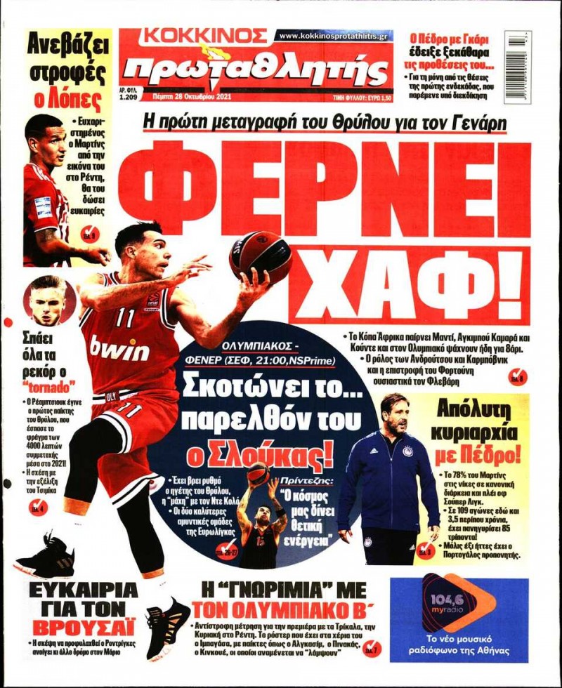 Το πρωτοσέλιδο του Κόκκινου Πρωταθλητή (28/10)
