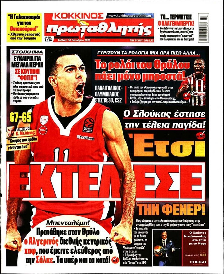 Το πρωτοσέλιδο του Κόκκινου Πρωταθλητή (30/10)