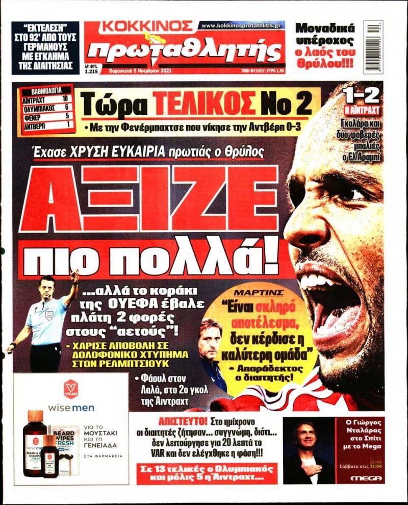 Το πρωτοσέλιδο του Κόκκινου Πρωταθλητή (5/11)