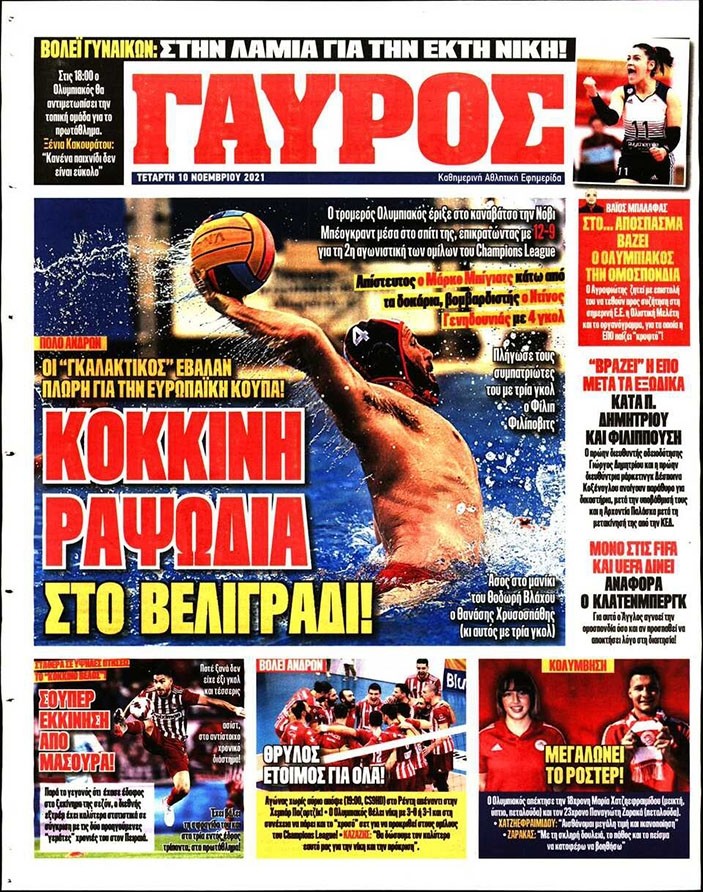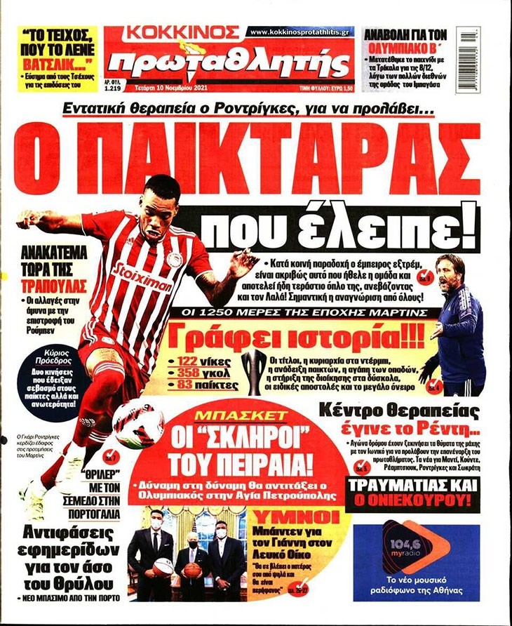 Το πρωτοσέλιδο του Κόκκινου Πρωταθλητή (10/11)