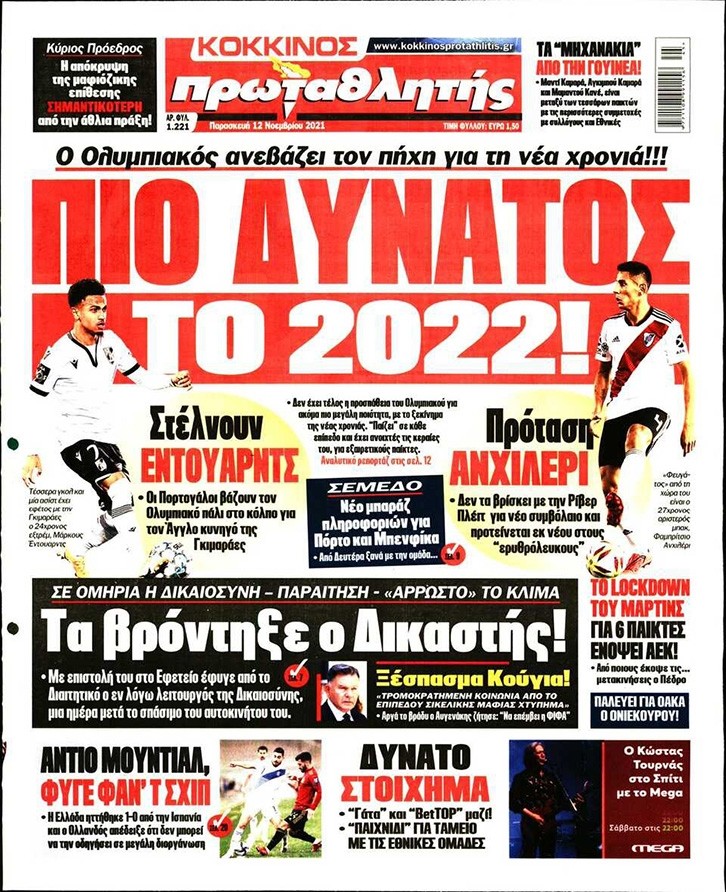 Το πρωτοσέλιδο του Κόκκινου Πρωταθλητή (12/11)