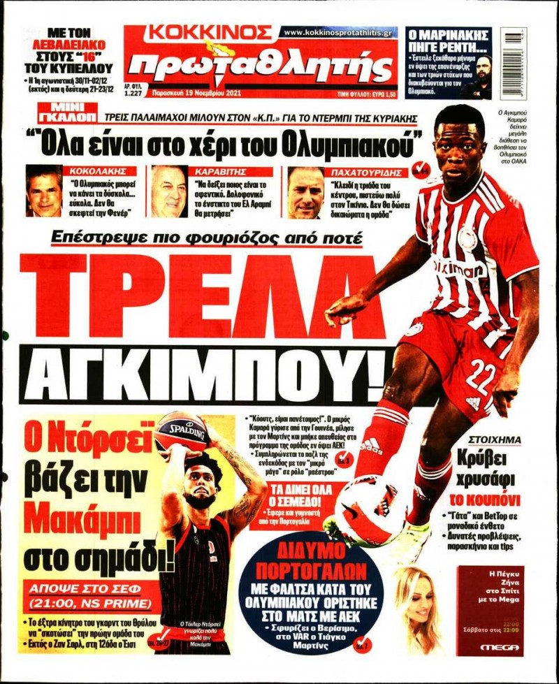 Το πρωτοσέλιδο του Κόκκινου Πρωταθλητή (19/11)