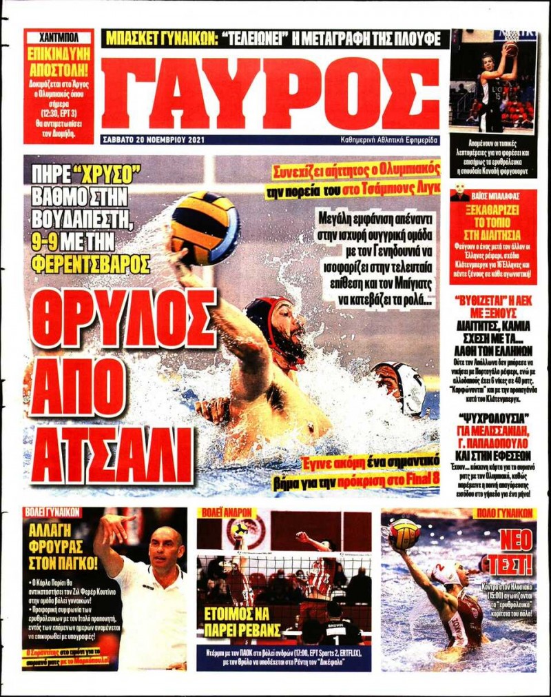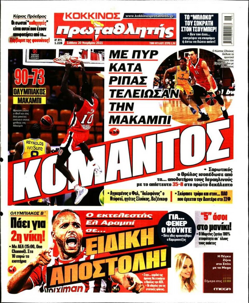Το πρωτοσέλιδο του Κόκκινου Πρωταθλητή (20/11)