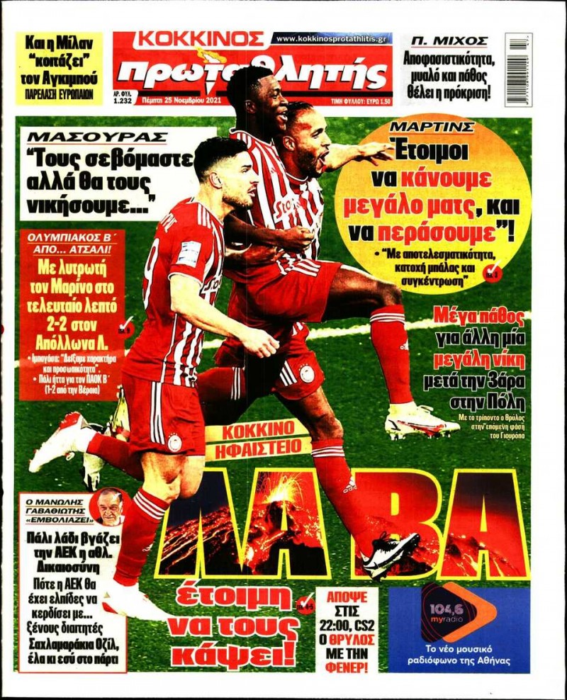 Το πρωτοσέλιδο του Κόκκινου Πρωταθλητή (25/11)
