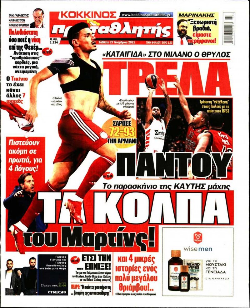 Το πρωτοσέλιδο του Κόκκινου Πρωταθλητή (27/11)
