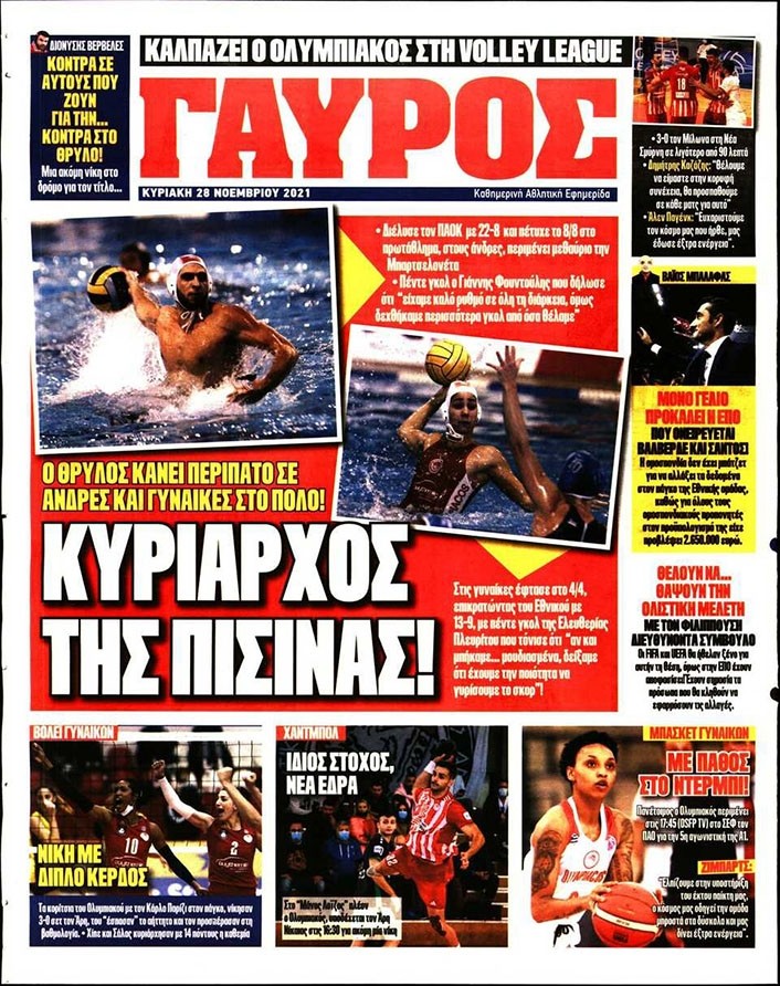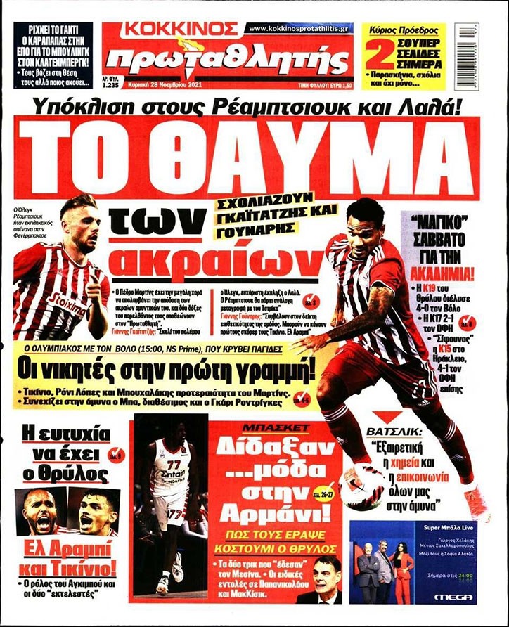 Το πρωτοσέλιδο του Κόκκινου Πρωταθλητή (28/11)