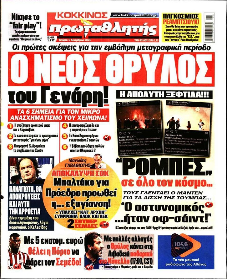 Το πρωτοσέλιδο του Κόκκινου Πρωταθλητή (1/12)