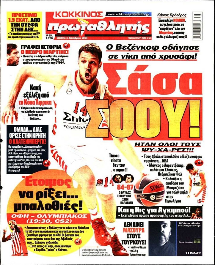 Το πρωτοσέλιδο του Κόκκινου Πρωταθλητή (4/12)