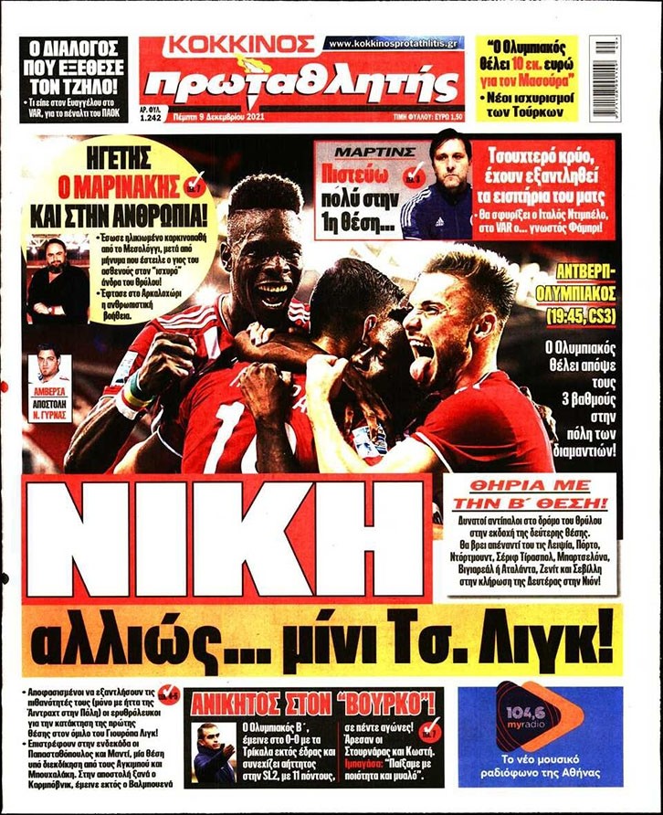Το πρωτοσέλιδο του Κόκκινου Πρωταθλητή (9/12)