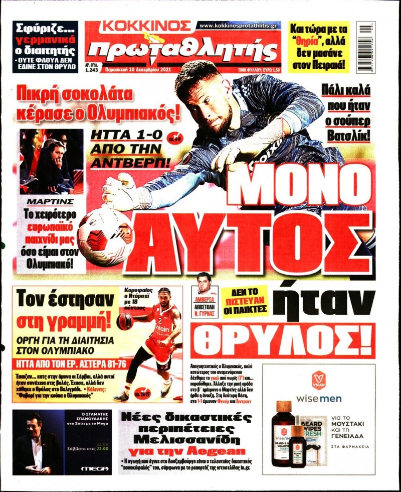 Το πρωτοσέλιδο του Κόκκινου Πρωταθλητή (10/12)