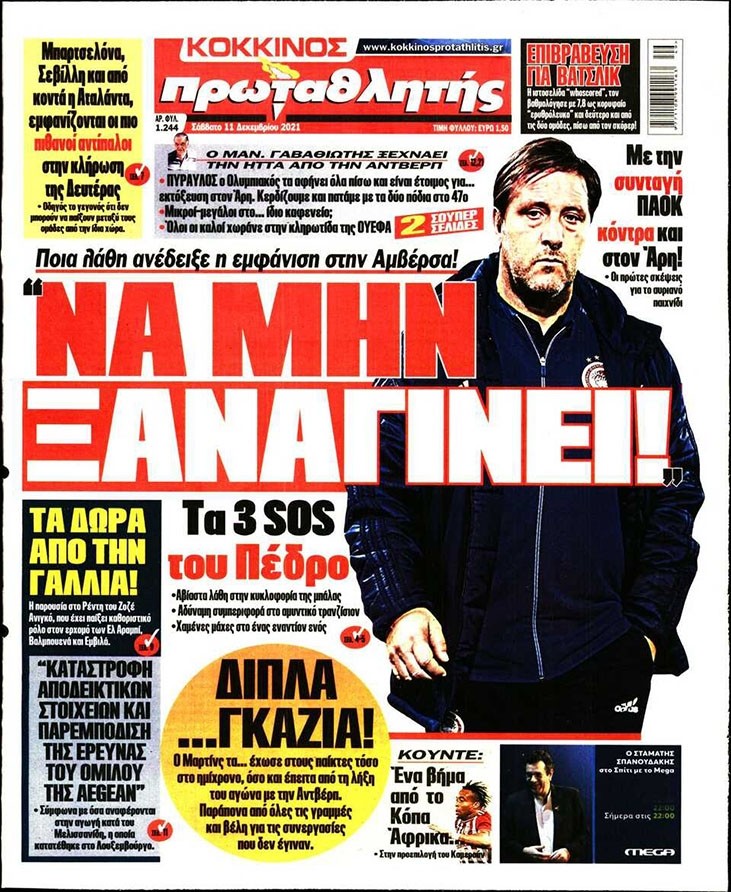 Το πρωτοσέλιδο του «Κόκκινου Πρωταθλητή», μπορείτε να δείτε μέσω του σάιτ μας. Καθημερινά εδώ, πώς κυκλοφορεί η εφημερίδα που καλύπτει όλη την «ερυθρόλευκη» δραστηριότητα.