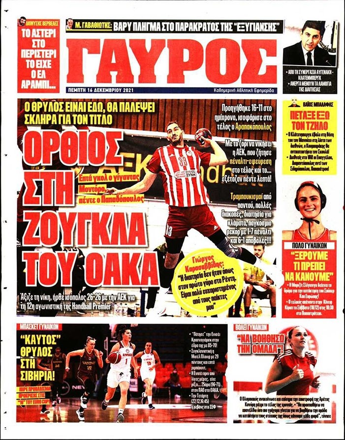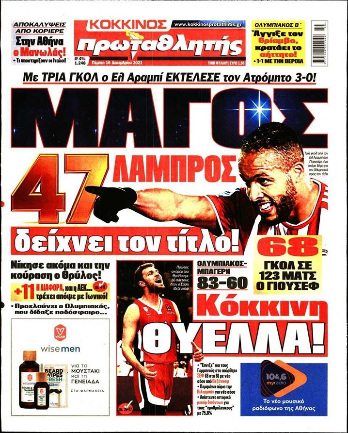 Το πρωτοσέλιδο του Κόκκινου Πρωταθλητή (16/12)