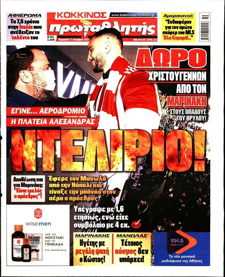 Το πρωτοσέλιδο του Κόκκινου Πρωταθλητή (17/12)