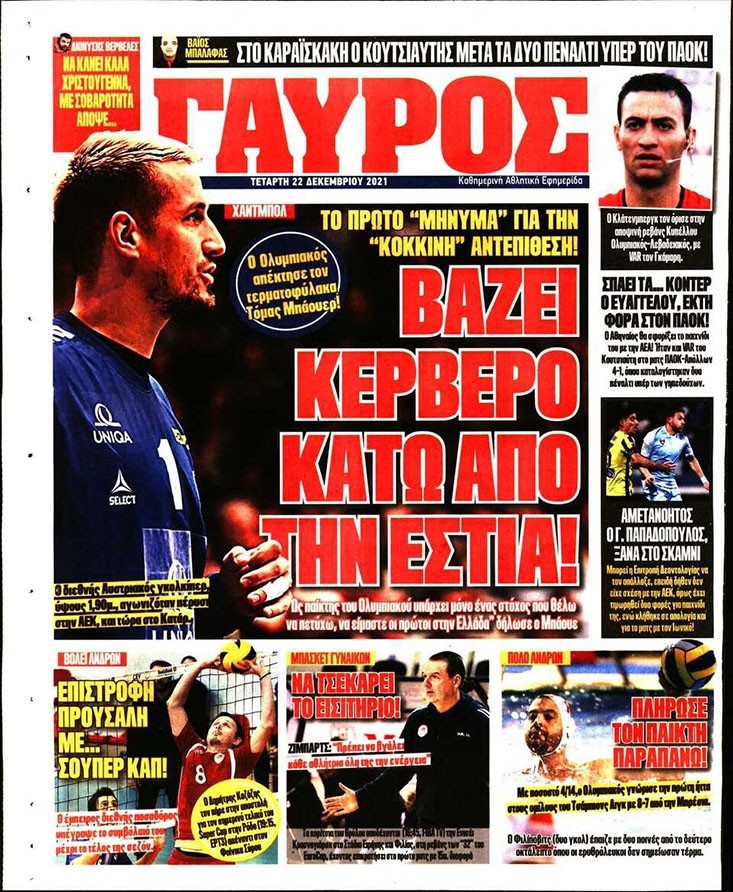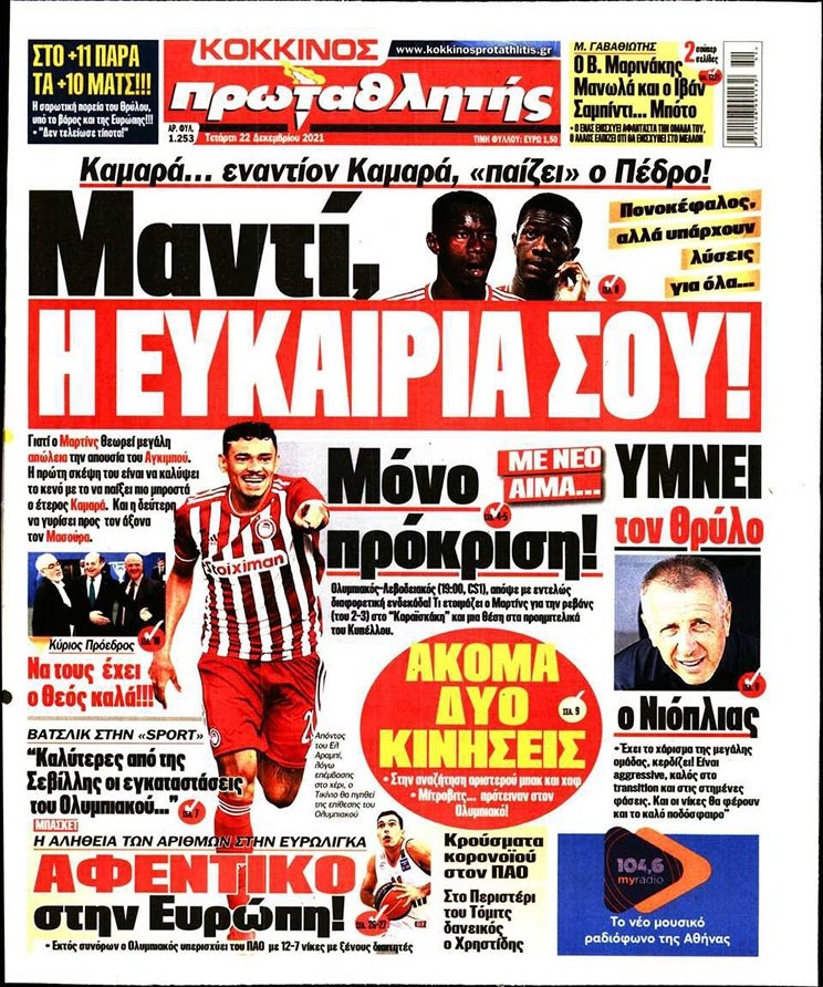 Το πρωτοσέλιδο του Κόκκινου Πρωταθλητή (22/12)