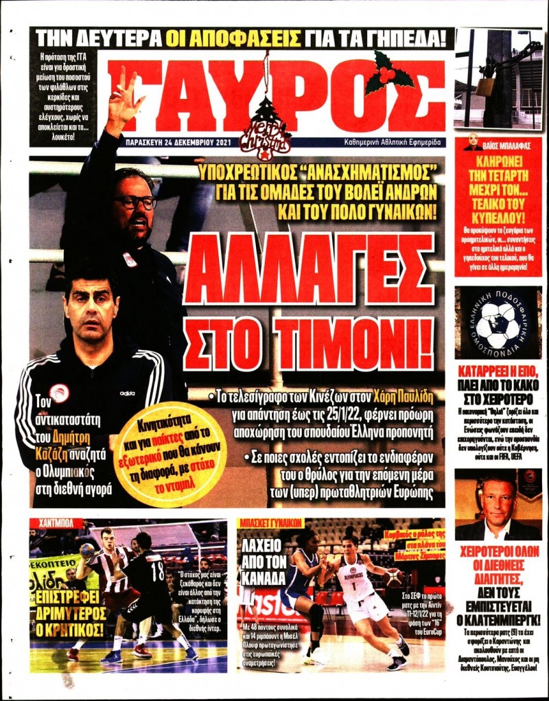 Το πρωτοσέλιδο του Κόκκινου Πρωταθλητή (24/12)
