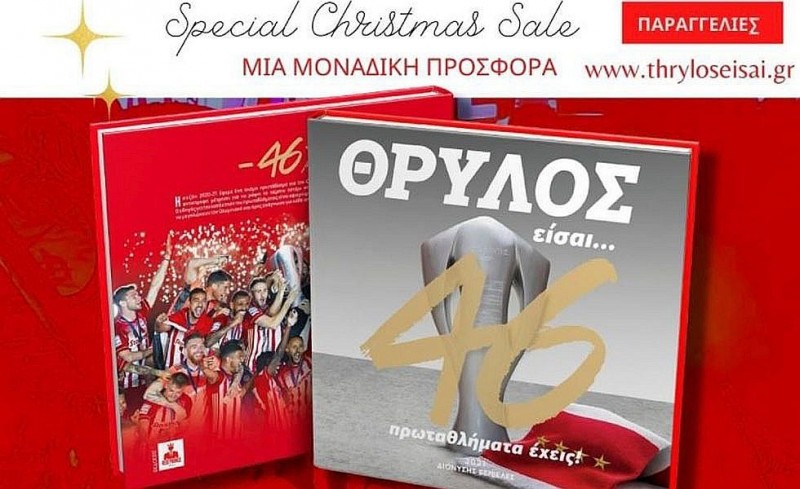 Συνεχίζεται, μέχρι εξαντλήσεως των ημερολογίων, η μεγάλη προσφορά του βιβλίου ΘΡΥΛΟΣ ΕΙΣΑΙ 46 πρωταθλήματα έχεις, με την υπογραφή του δικού μας Διονύση Βερβελέ! Μία προσφορά άκρως εορταστική και στο κλίμα του 2022 που έρχεται, με ημερολόγιο… θρυλικό, για τη νέα χρονιά! Τι κάθεσαι; Κάνε το δικό σου πριν εξαντληθεί! Λεπτομέρειες παρακάτω…