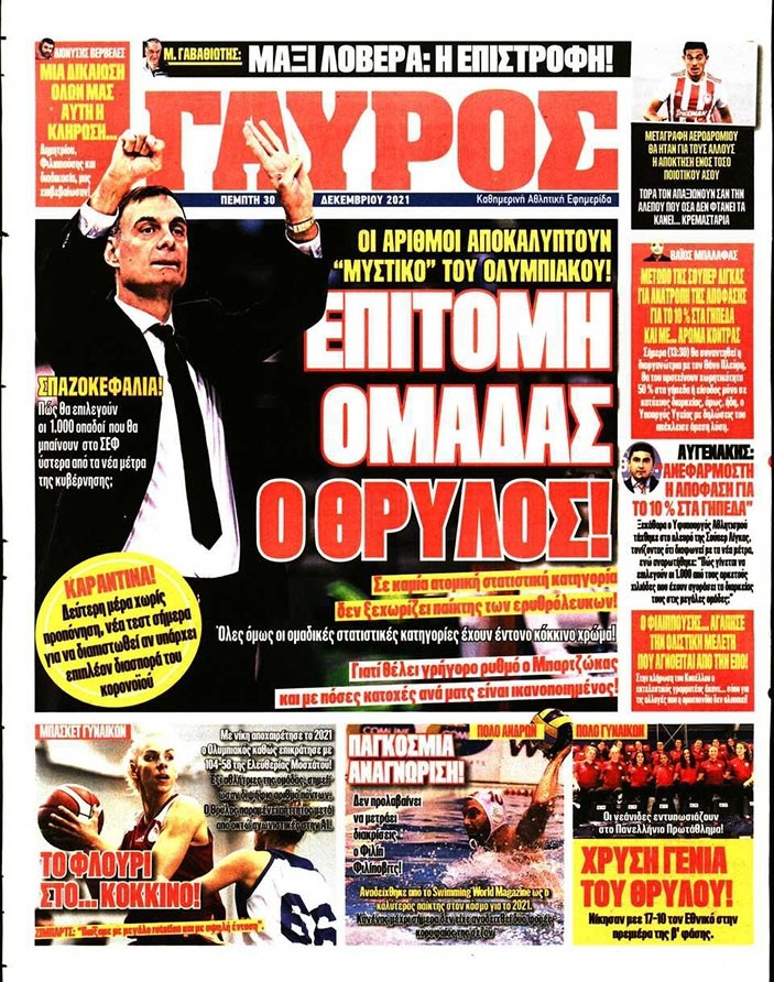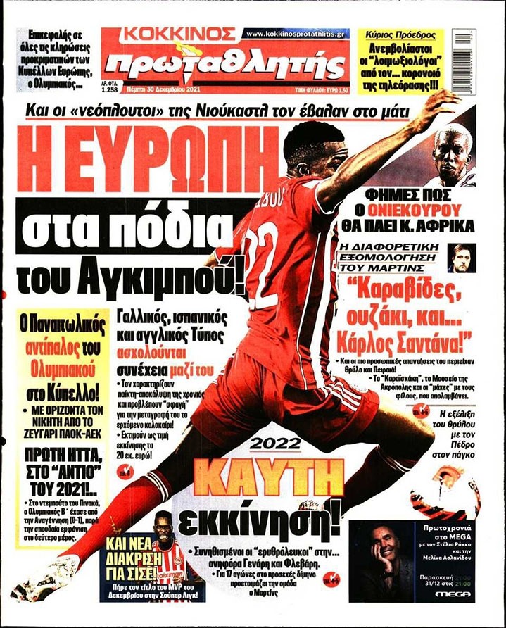 Το πρωτοσέλιδο του Κόκκινου Πρωταθλητή (30 /12)