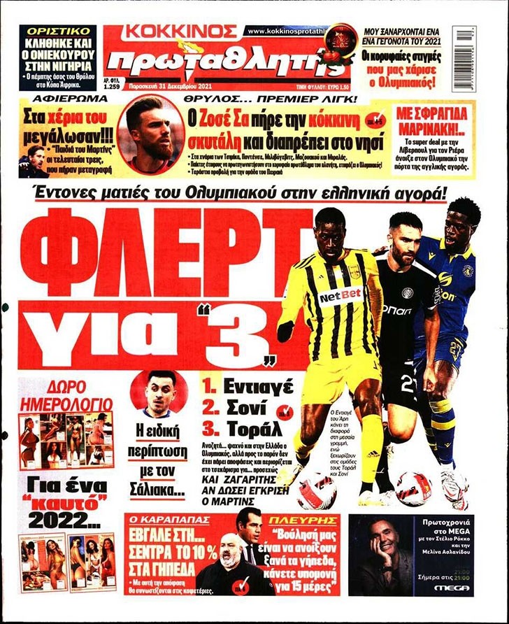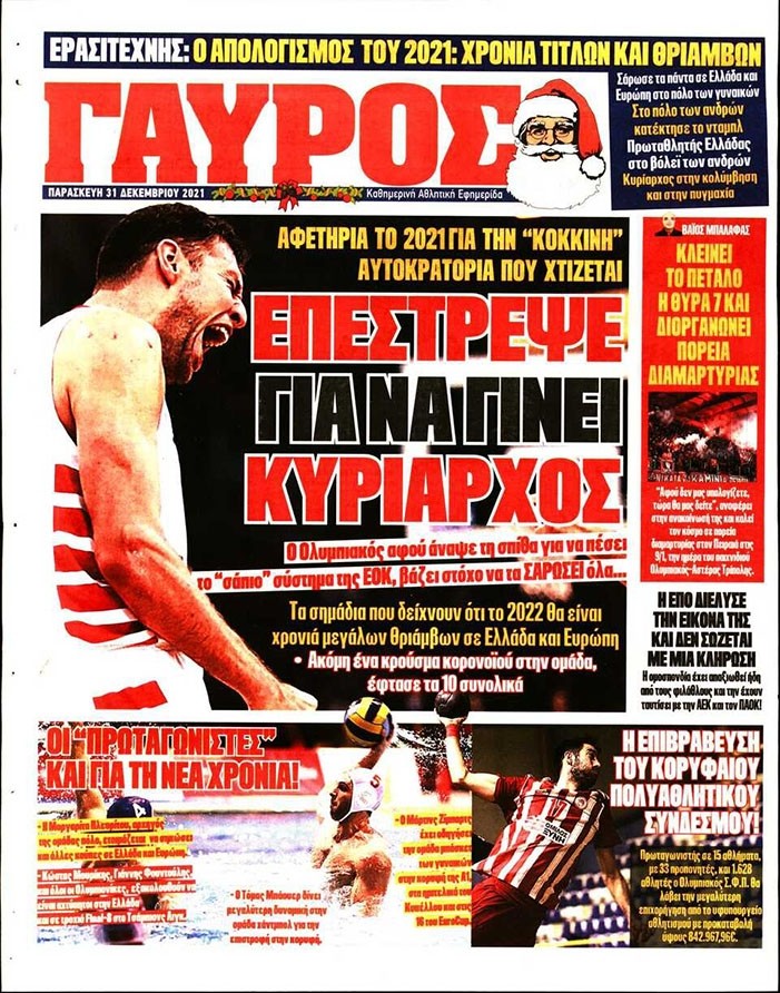 Το πρωτοσέλιδο του Κόκκινου Πρωταθλητή (31/12)