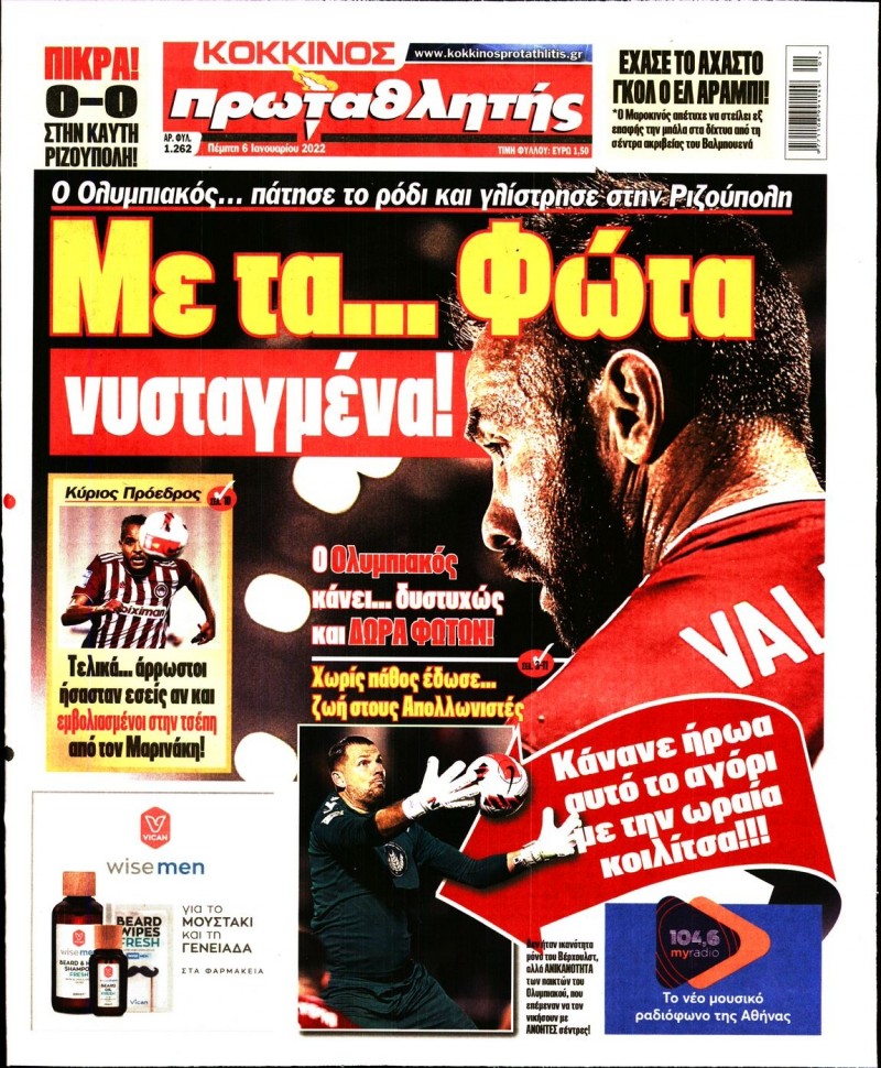 Το πρωτοσέλιδο του Κόκκινου Πρωταθλητή (6/1)