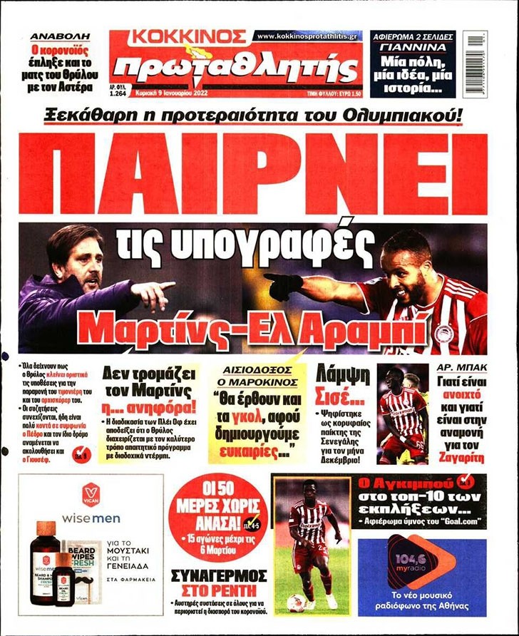 Το πρωτοσέλιδο του Κόκκινου Πρωταθλητή (9/1)