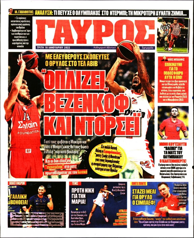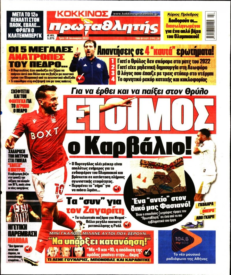 Το πρωτοσέλιδο του Κόκκινου Πρωταθλητή (18/1)