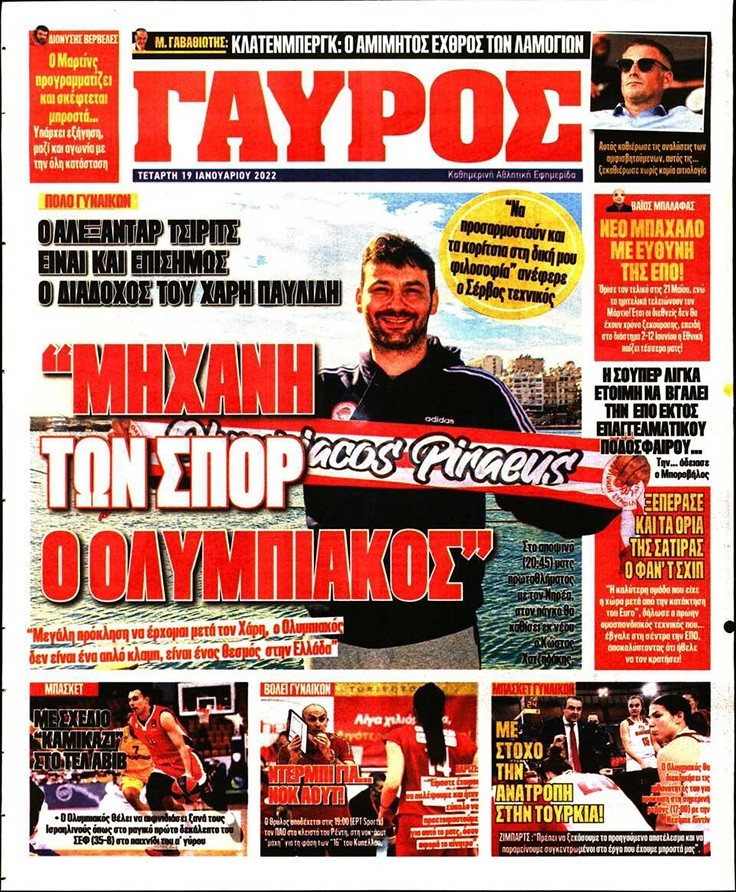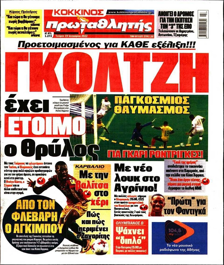 Το πρωτοσέλιδο του Κόκκινου Πρωταθλητή (19/1)