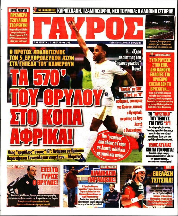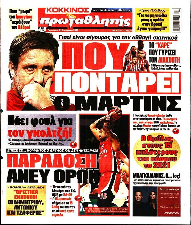 Το πρωτοσέλιδο του Κόκκινου Πρωταθλητή (21/1)