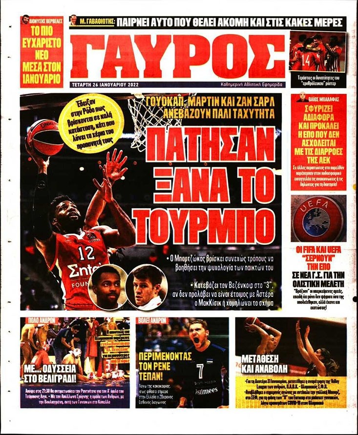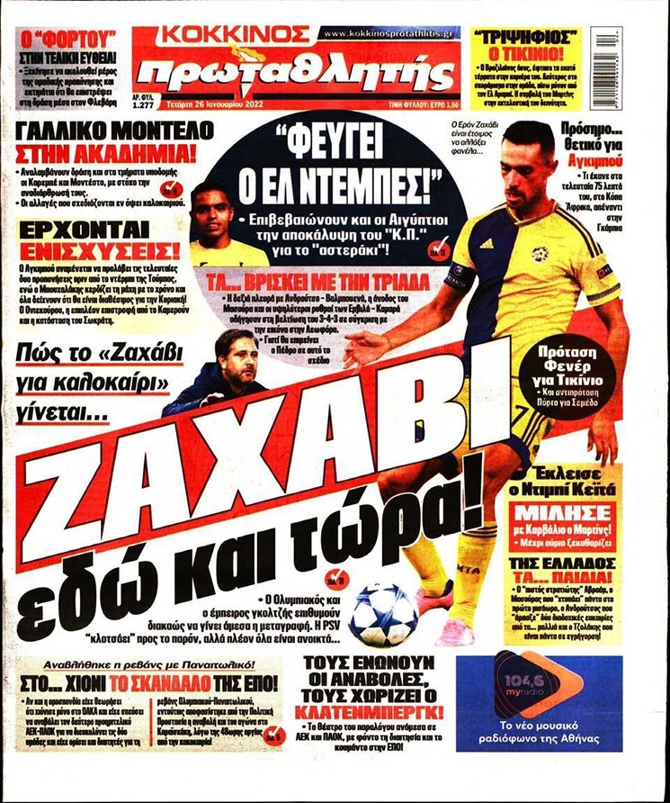 Το πρωτοσέλιδο του Κόκκινου Πρωταθλητή (26/1)