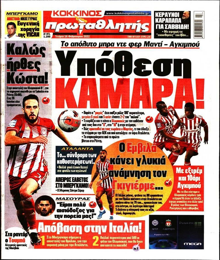 Το πρωτοσέλιδο του Κόκκινου Πρωταθλητή (16/2)