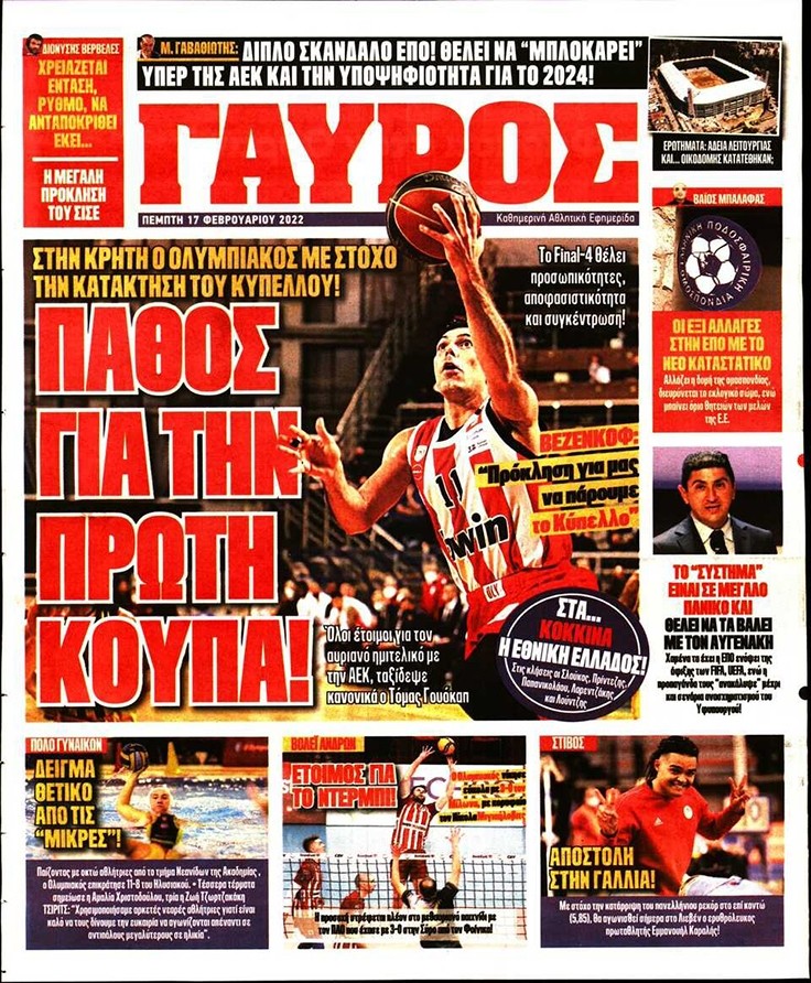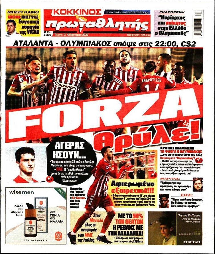 Το πρωτοσέλιδο του Κόκκινου Πρωταθλητή (17/2)