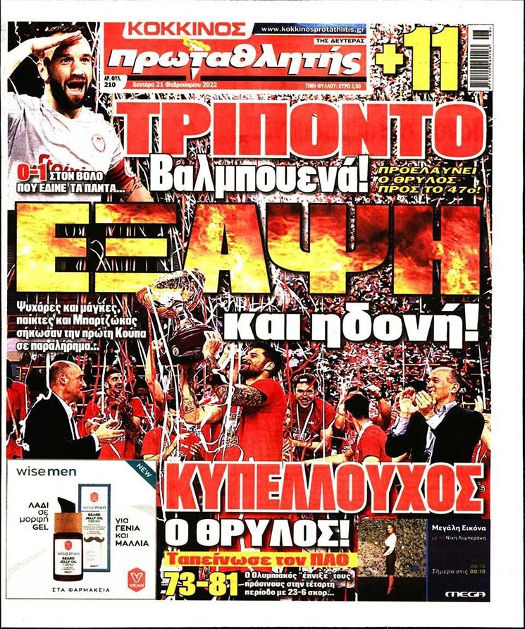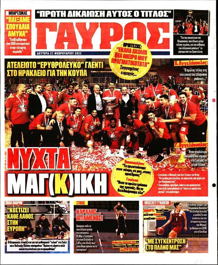 Το πρωτοσέλιδο του Κόκκινου Πρωταθλητή (21/2)