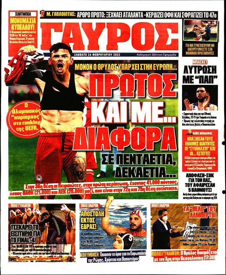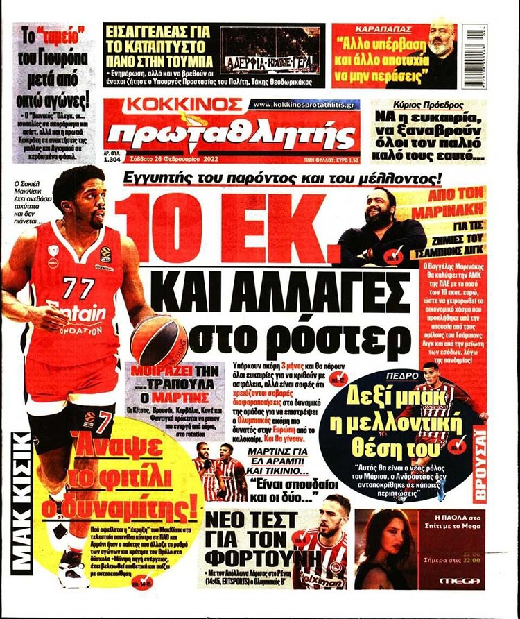 Το πρωτοσέλιδο του Κόκκινου Πρωταθλητή (26/2)