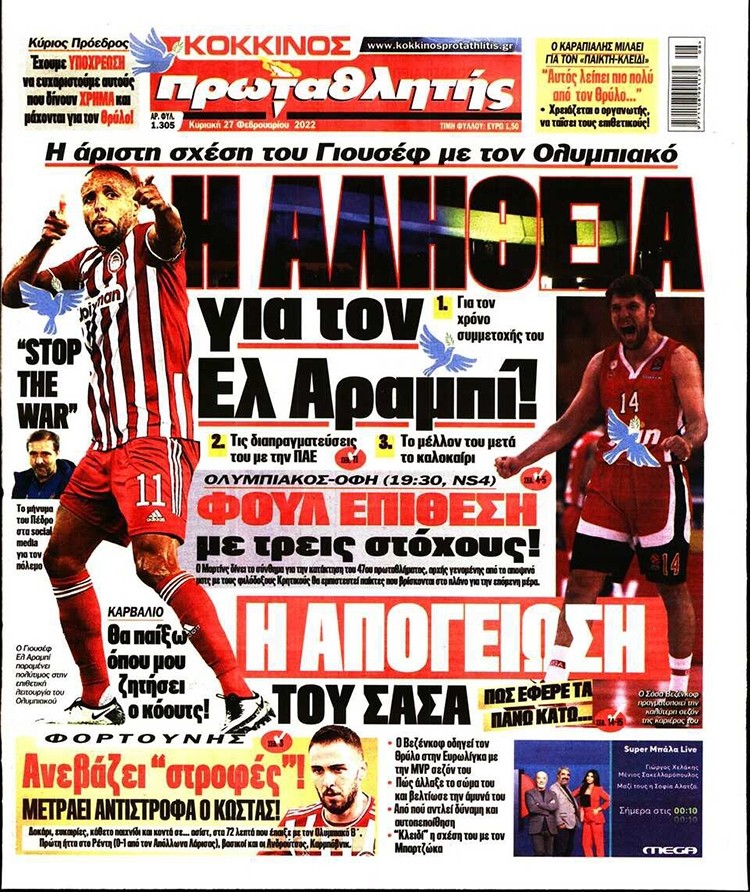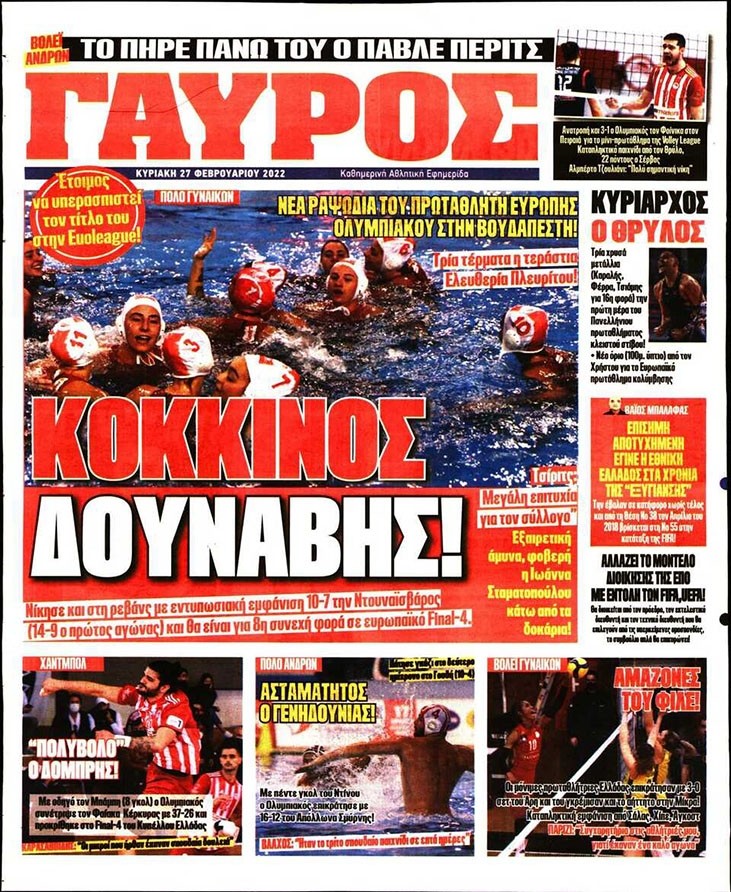 Το πρωτοσέλιδο του Κόκκινου Πρωταθλητή (27/2)